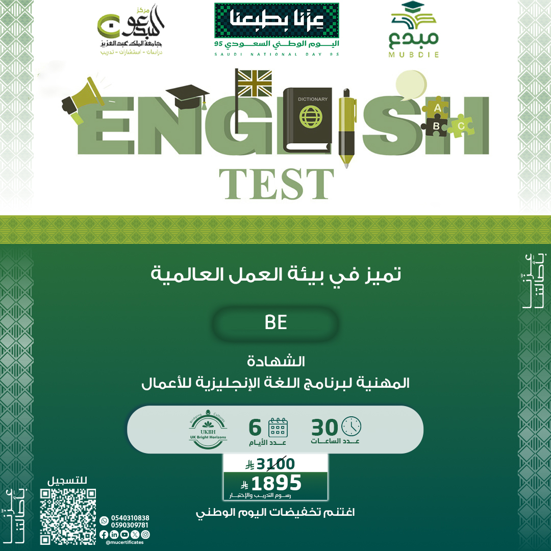 الشهادة المهنية لبرنامج اللغة الإنجليزية للأعمال BE